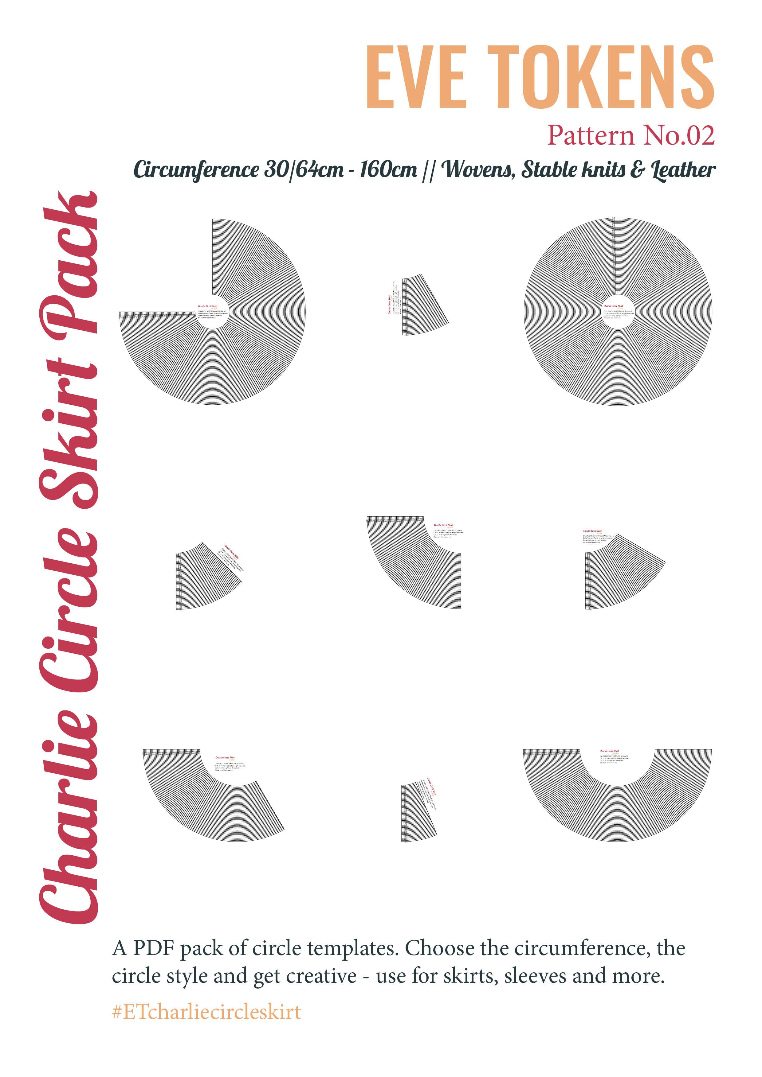 The Charlie Circle Skirt Templates pack is digital download that will enable you to make any circle skirt that you can imagine.